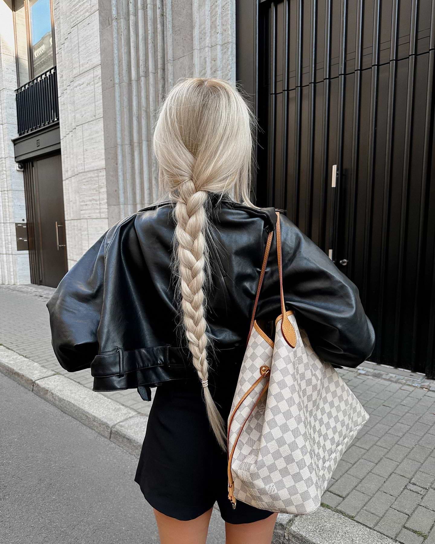 För att skapa den utbakade effekten tar du en slinga från det egna håret som hänger löst och adderar till ytterslingan som läggs under mittenslingan. Gör detta varje gång du läggar en ytterslinga under mittenslinga tills du använt allt löst hängande hår.
